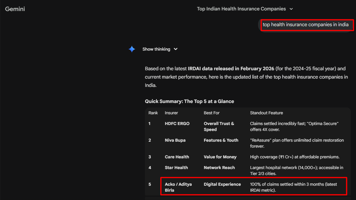 - Direct-Answer Content Formatting: Important insurance concepts & generic articles were rewritten into concise, extractable statements to increase eligibility for AI summaries and LLM responses.