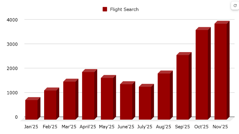 - Flight searches and transactions soared, showcasing improved funnel capture from early discovery to conversion.