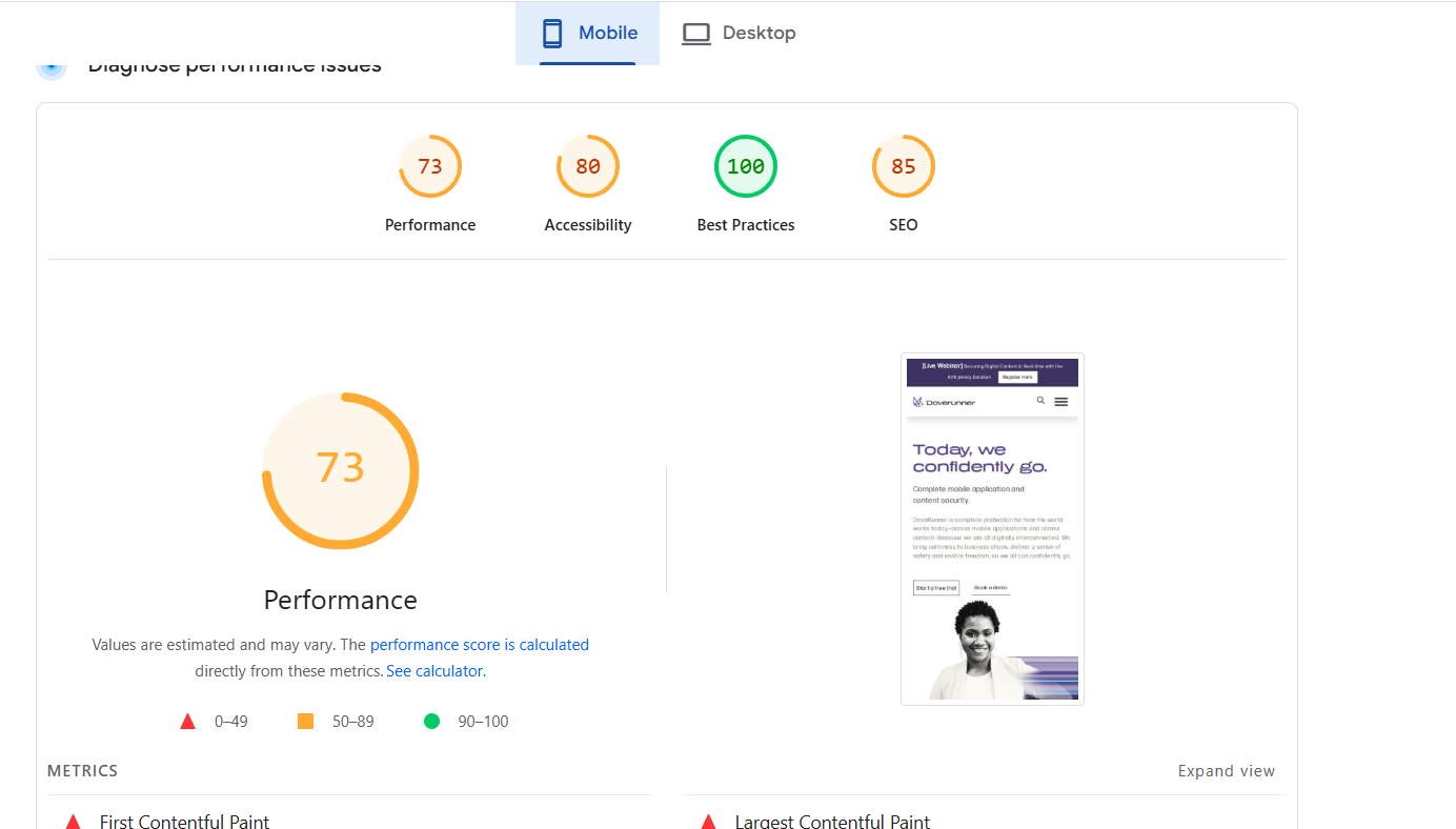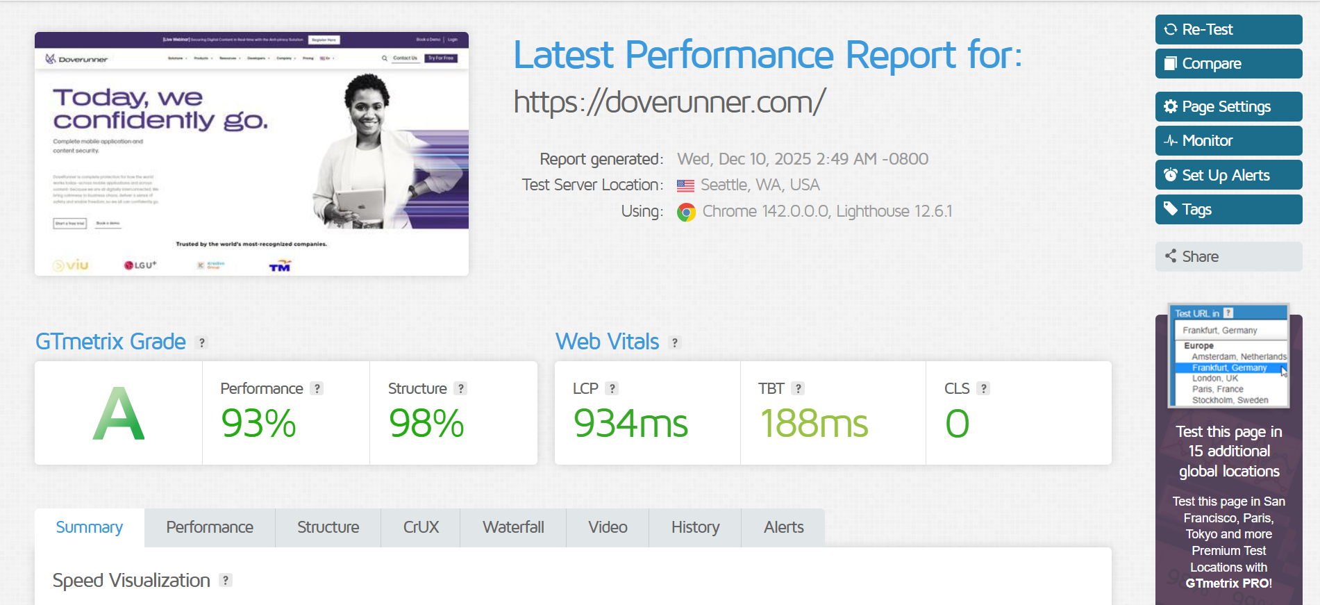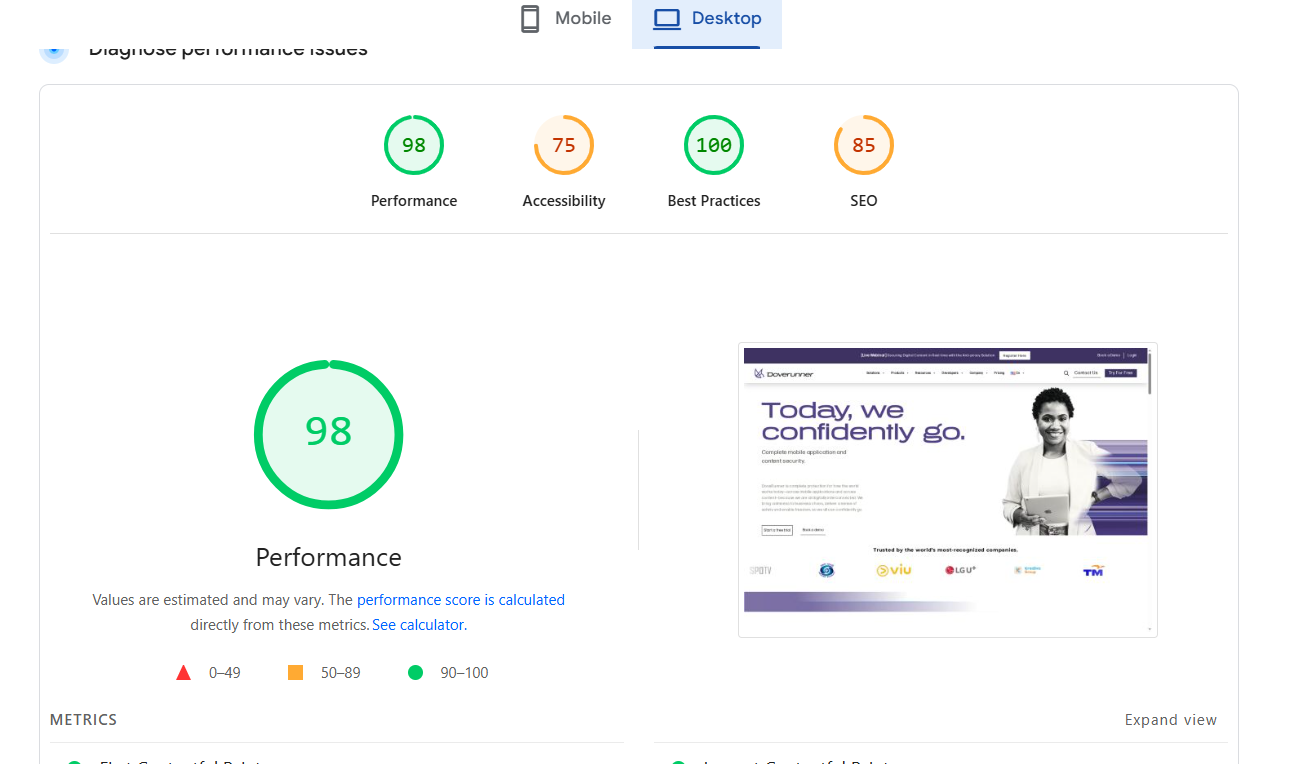 - Achieve a fast, high-performing website with strong page-speed on both desktop and mobile to match DoveRunner’s enterprise security standards.