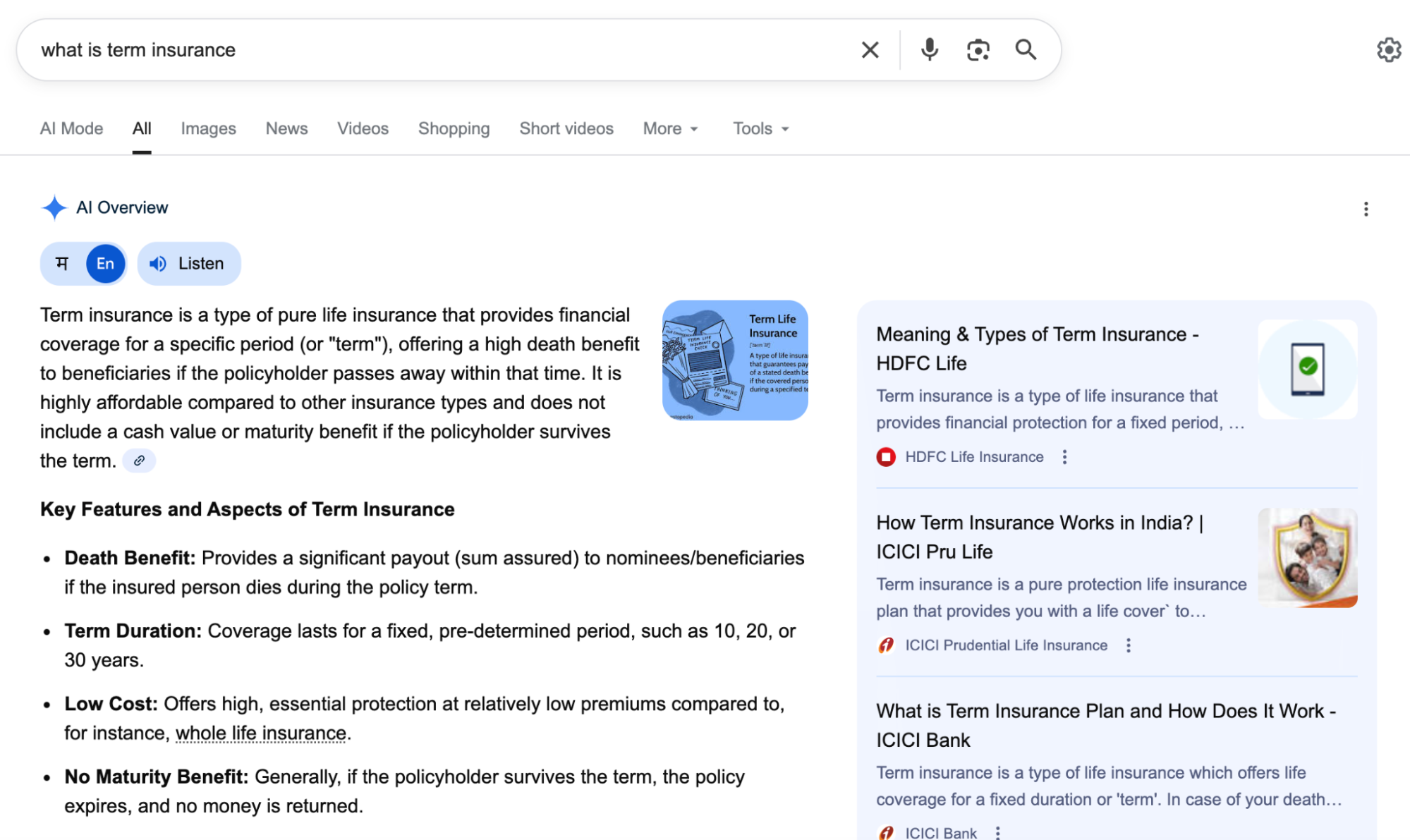 Pages were improved with stronger internal linking, clearer headings, and better content flow. This helped AI systems connect different topics and understand how HDFC Life fits into the term insurance space.
