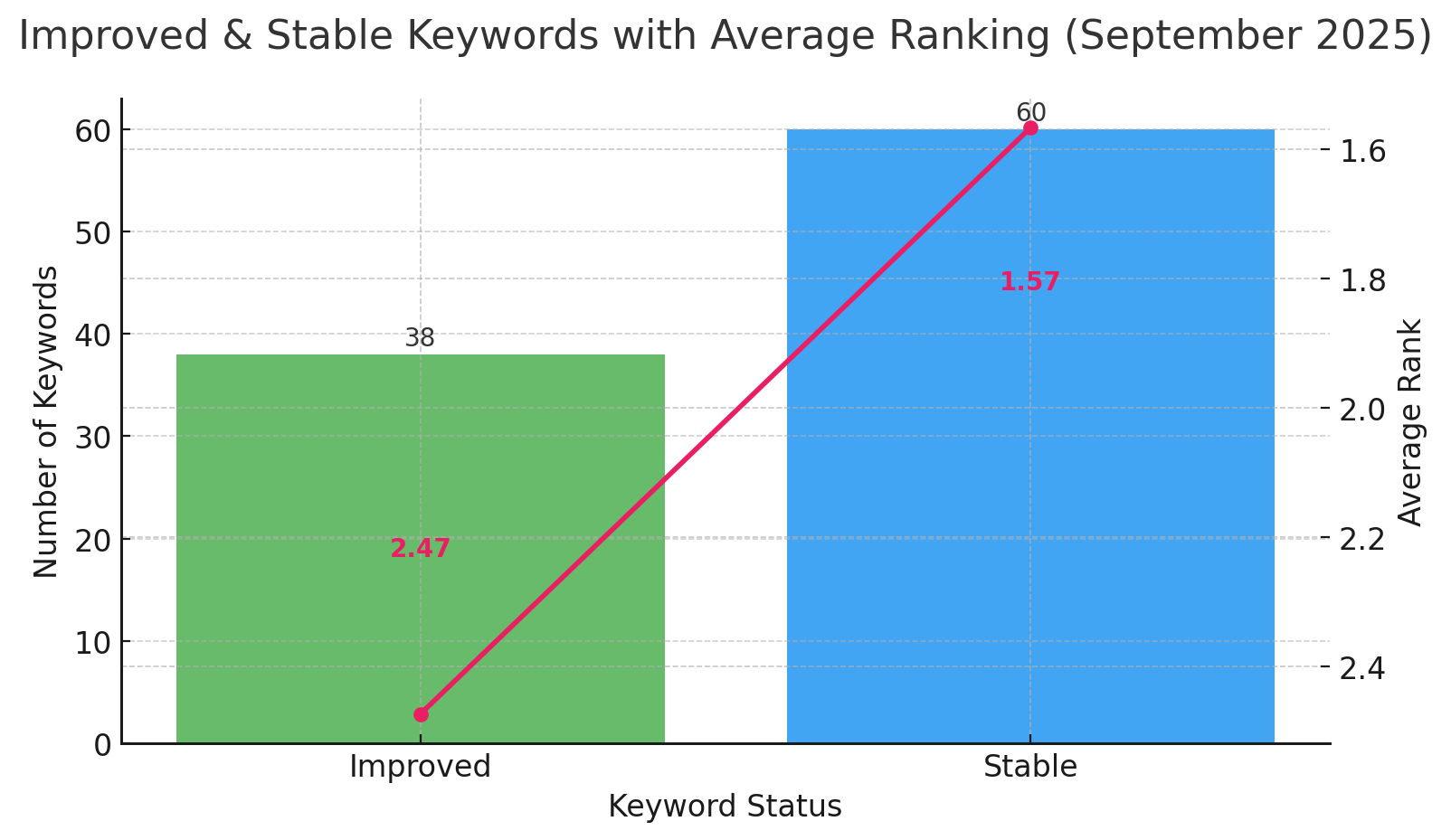 Showed Improvement or Maintained Stability, Reflecting Strong SERP Performance and Long-term Visibility.43%