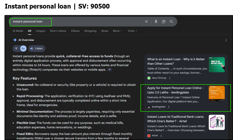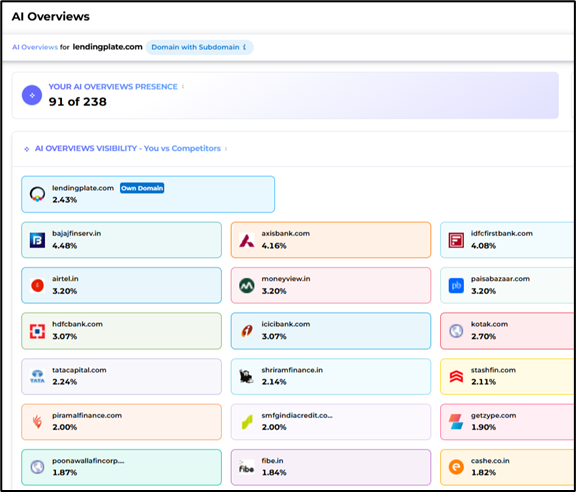 As search technology continues to evolve, the core objective was expanded beyond traditional SEO rankings. The focus now includes strengthening the brand’s presence across LLM-driven discovery channels such as ChatGPT, Gemini, and Perplexity, along with enhancing visibility in Google’s AI Overviews. This broader approach ensures the brand remains discoverable and authoritative in both conventional and AI-assisted search environments. For the same Lending plate had set following objectives: