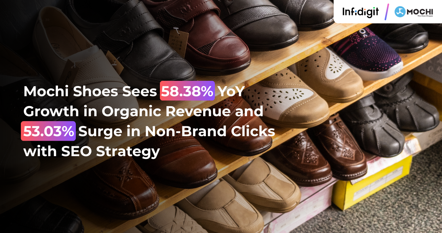 In a highly competitive footwear market, Mochi Shoes aimed to enhance its organic visibility and increase online revenue through strategic SEO interventions.