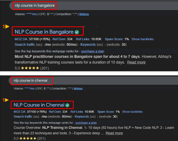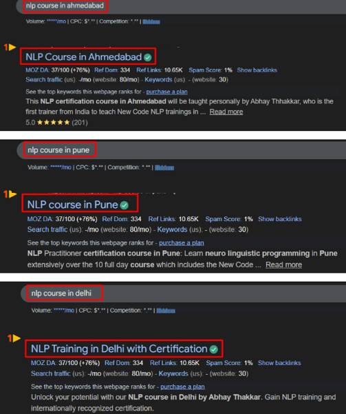 - Increasing enrollments for NLP training courses through improved organic visibility
