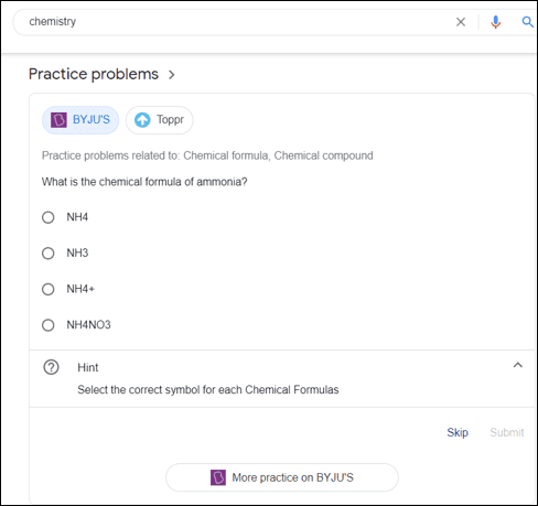 Google has started showing, or rather say testing, homework practice problems in search results pages along with the organic rankings. The search results have been sourced from BYJU’S, Toppr and other similar online learning websites and portals.