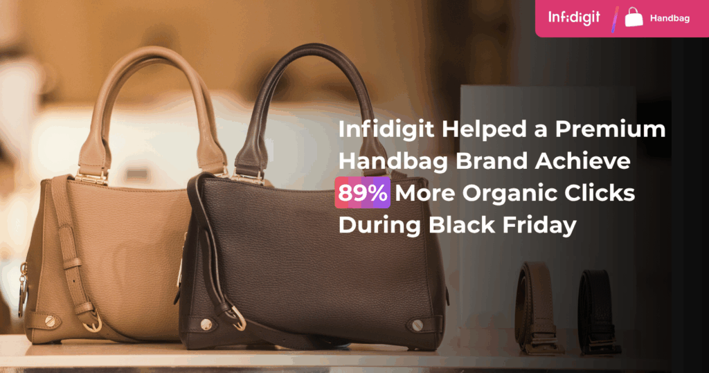 - Infidigit conducted deep keyword research to identify trending queries related to Black Friday handbag deals.