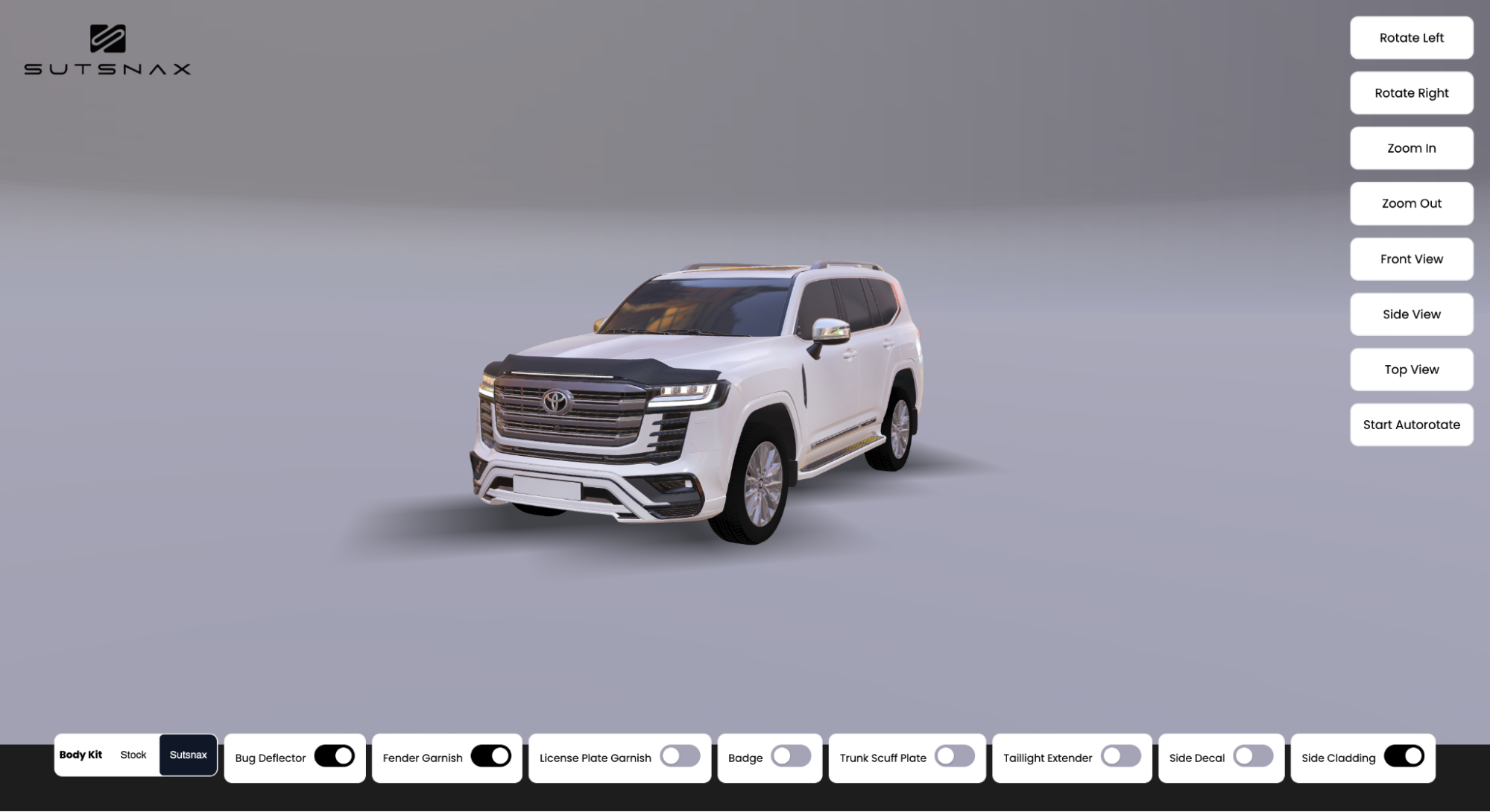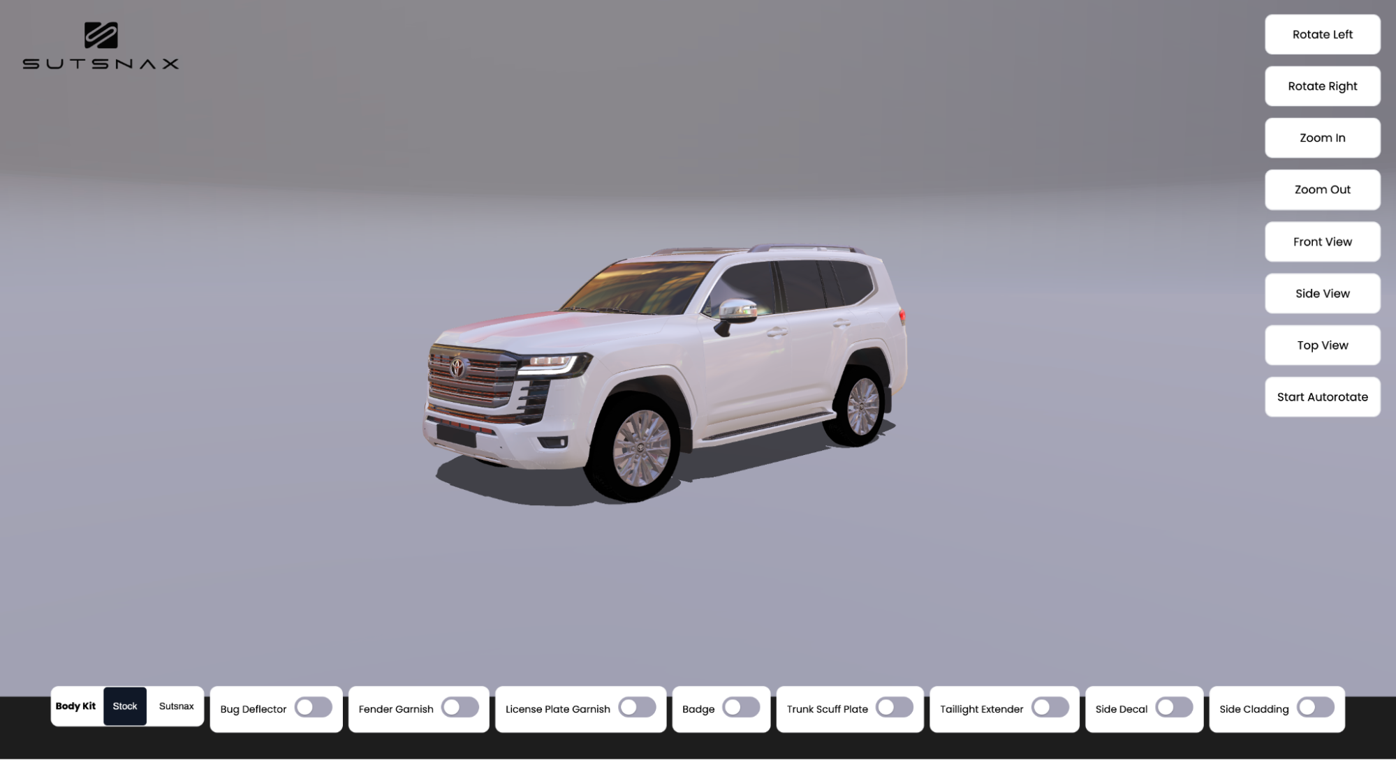 Sutsnax developed a 3D Product Configurator that brings vehicles and accessories to life in the browser using Babylon.js and Three.js as the core 3D technologies.